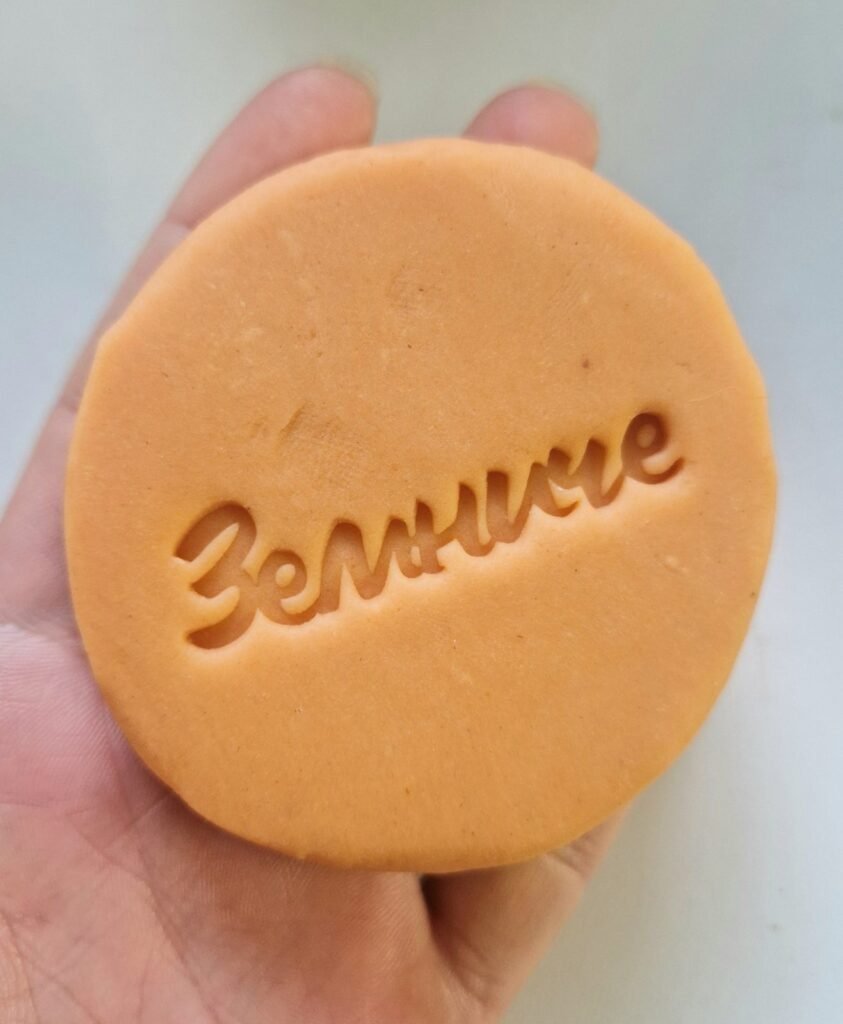 Пластилинът "Земниче" е изцяло ръчно изработен от натурални съставки – брашно, сол, растителни масла и естествени багрила, извлечени от суперхрани, подправки и чайове.
